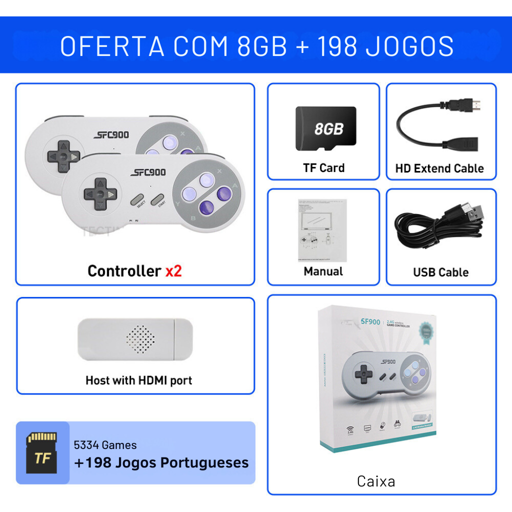 Consola Super N(retrô) + 2.000 jogos + 2 controladores + Prenda 8gb de memória