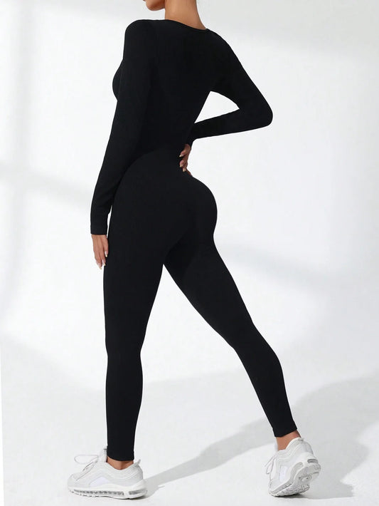 DESCONTO DE 50%Macacão canelado de manga comprida e ajuste fino