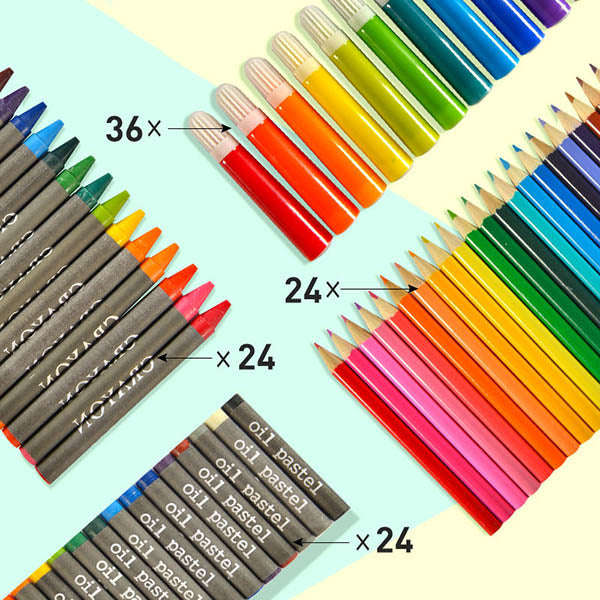 Liberte a sua criatividade com este conjunto para colorir com 150 peças, perfeito para projetos escolares, trabalhos em casa ou expressão artística.🎨 Inclui 36 canetas de aguarela, 24 lápis, 48 lápis de cera, 12 aguarelas e muito mais!✨