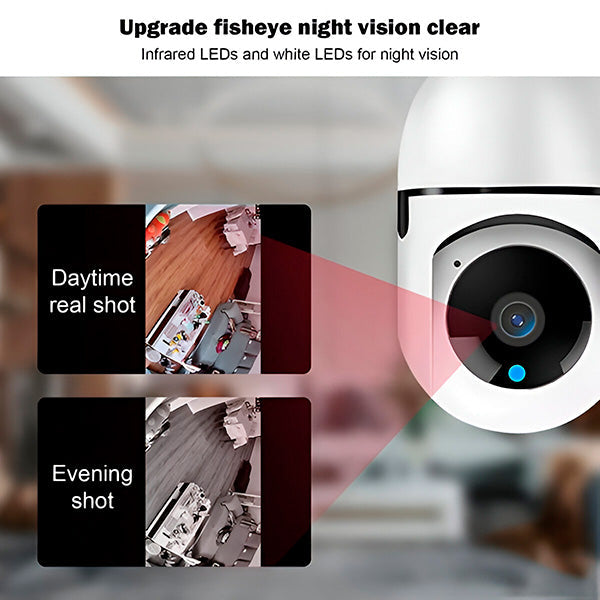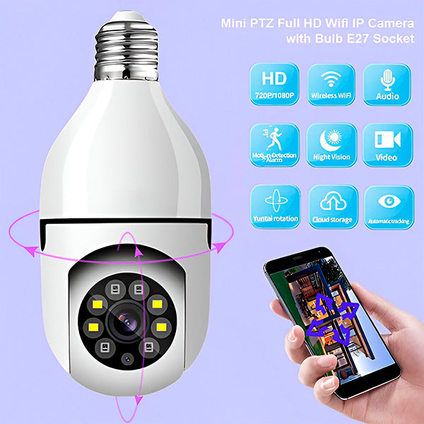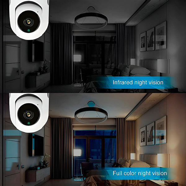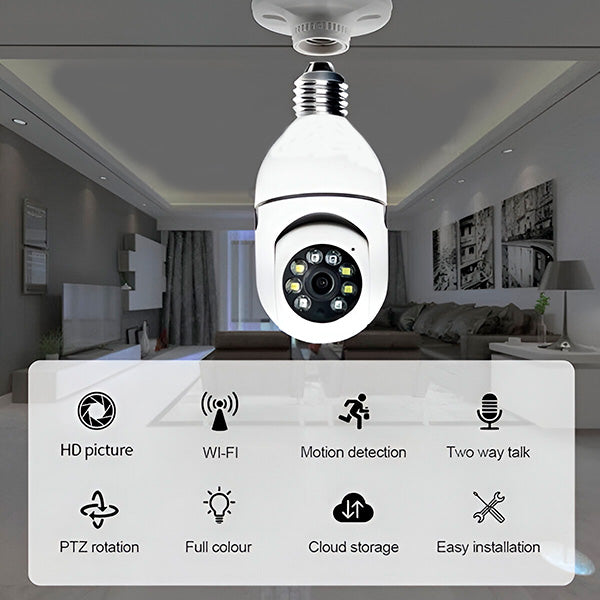 Diga adeus às câmaras de segurança volumosas e caras e diga olá, que é super portátil e enrosca como uma lâmpada normal.