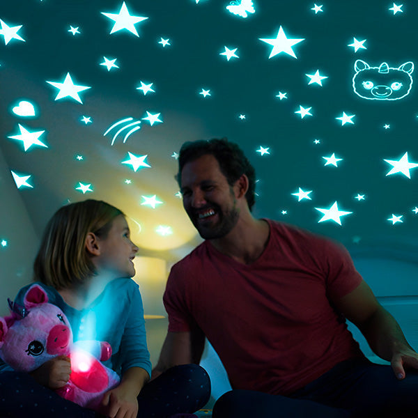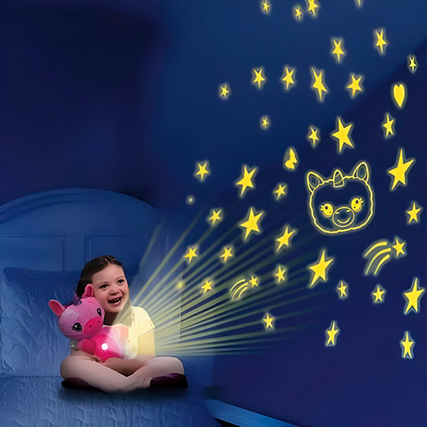 Um peluche e luz noturna que projeta um belo céu estrelado no teto!