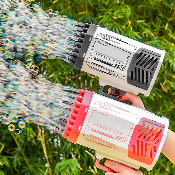 Pistola de bolhas com 69 furos e luzes LED coloridas